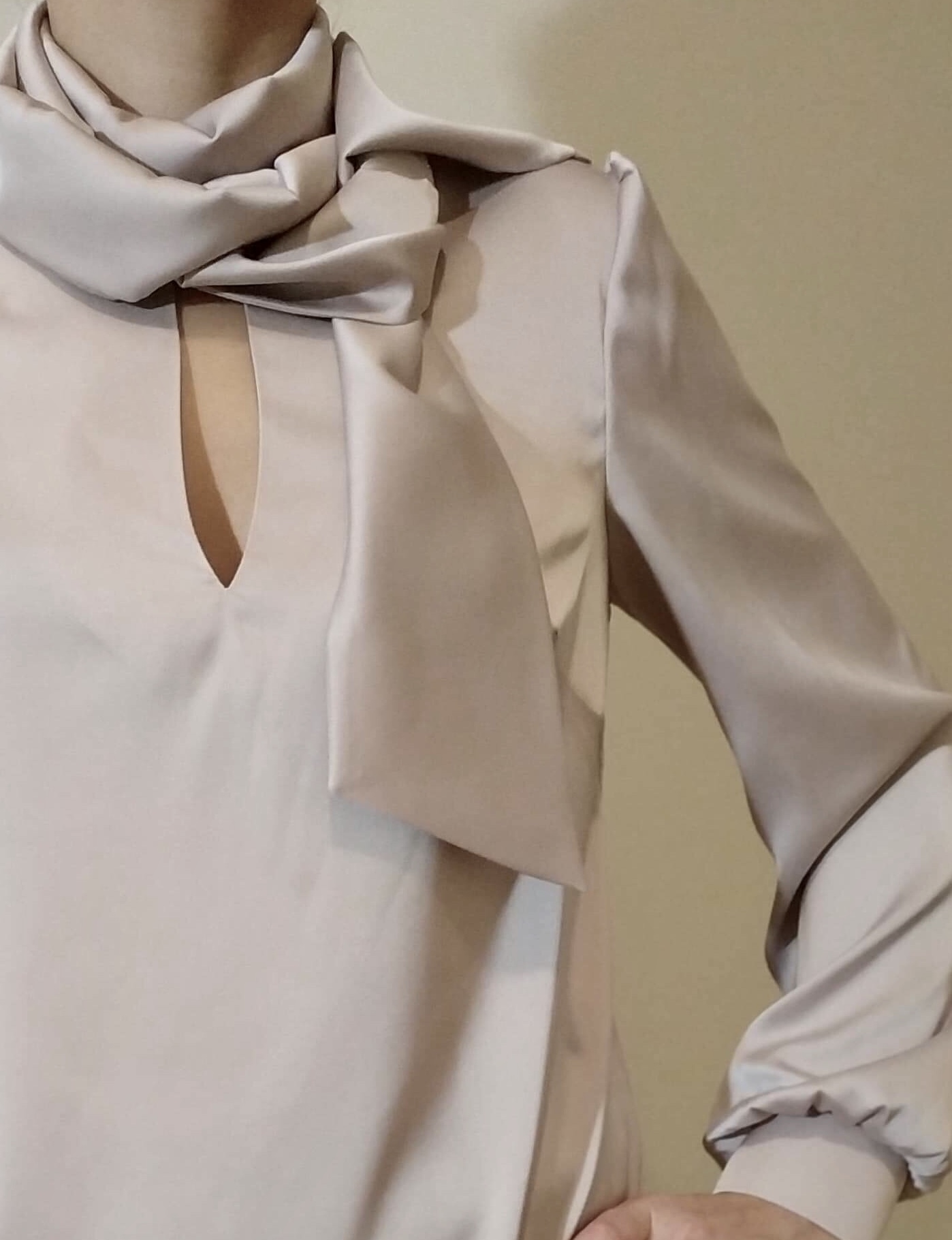 - Silk shirt blouse made of silky fabric in a shade of champagne beige, slightly falling into pink