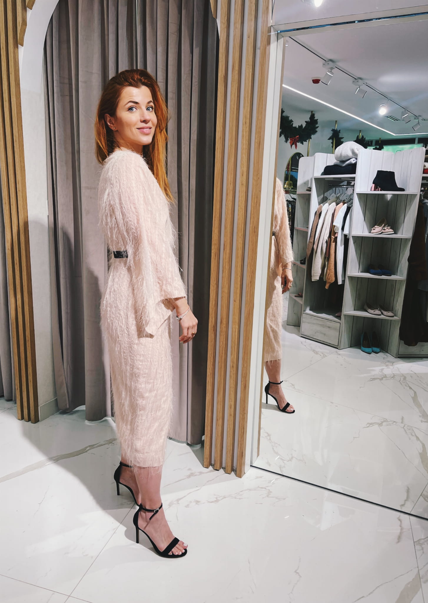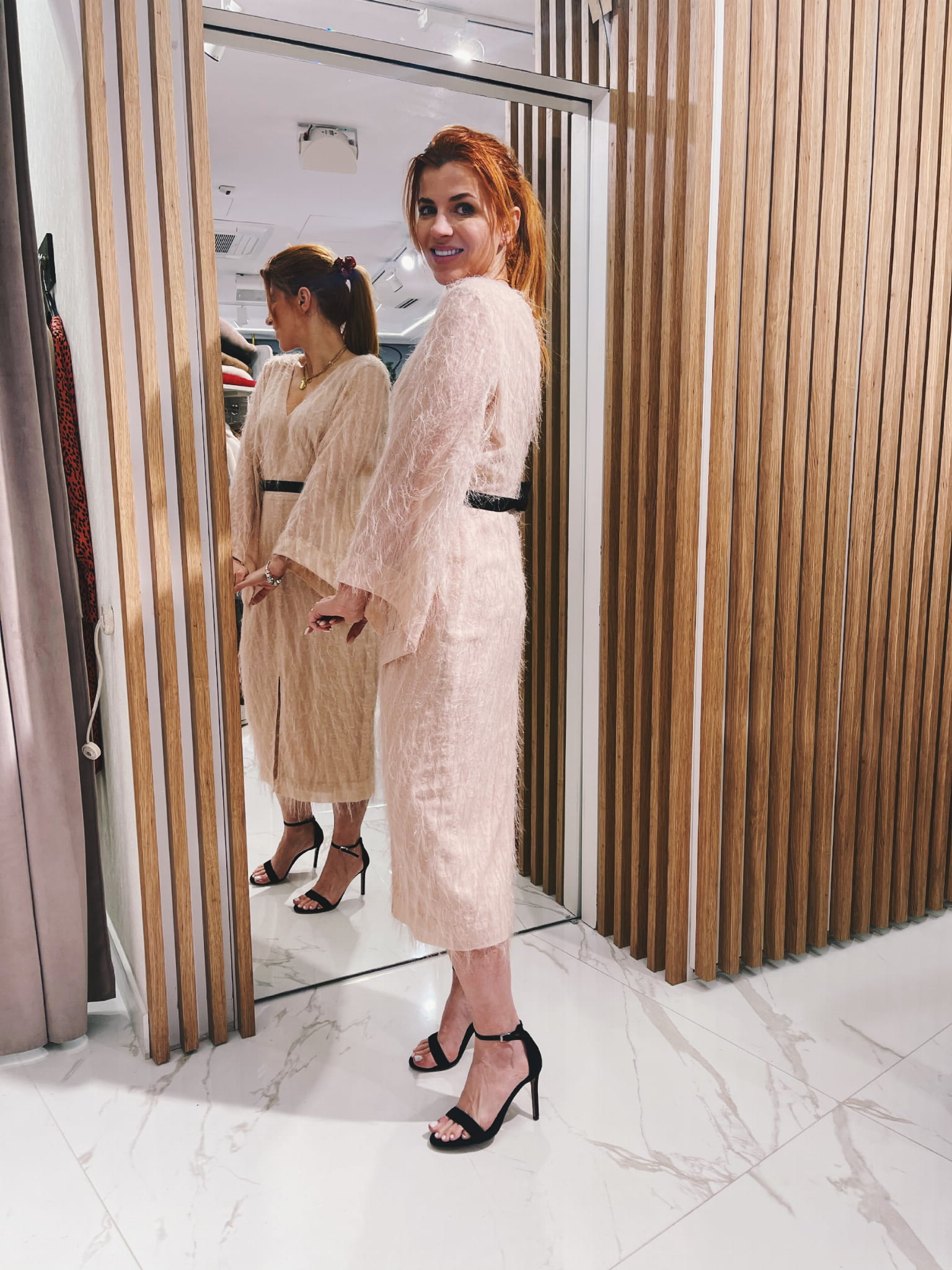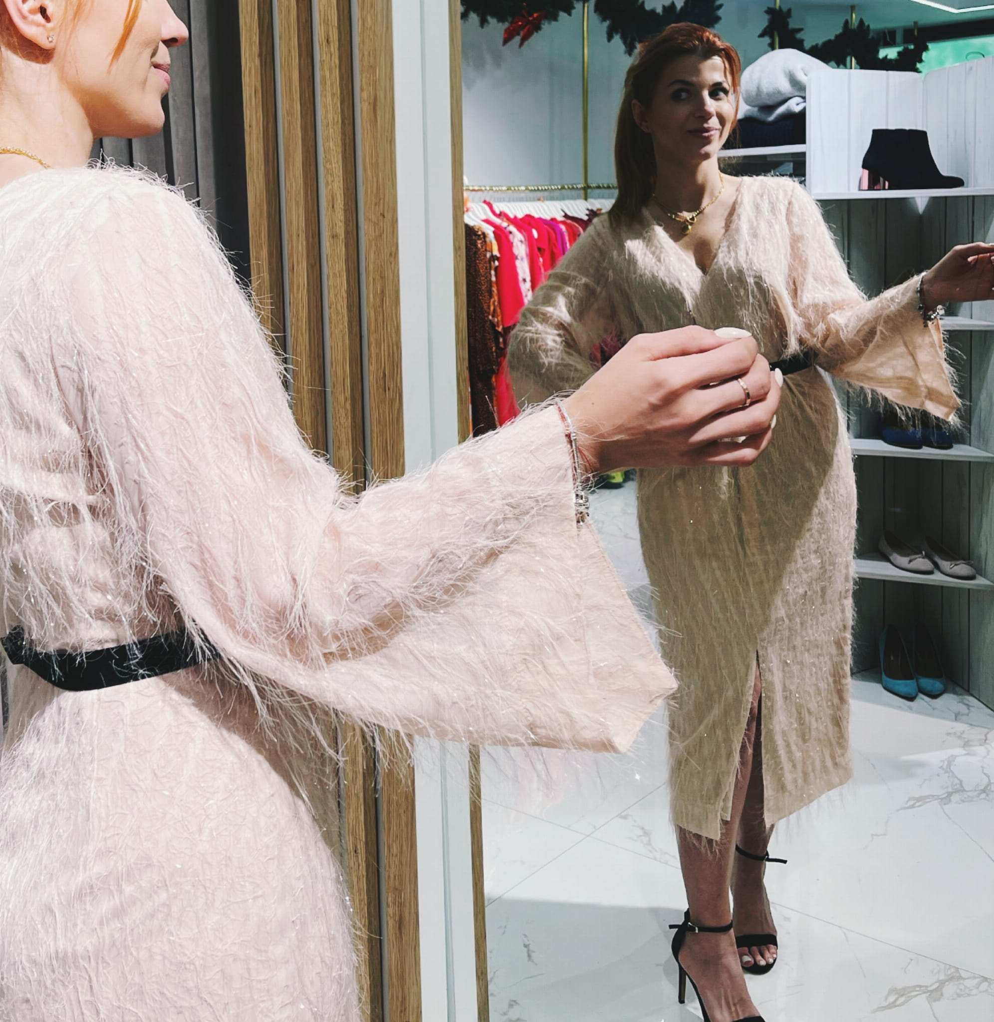 graphite midi dress with feathers and wide sleeves Diana by Swing powder pink