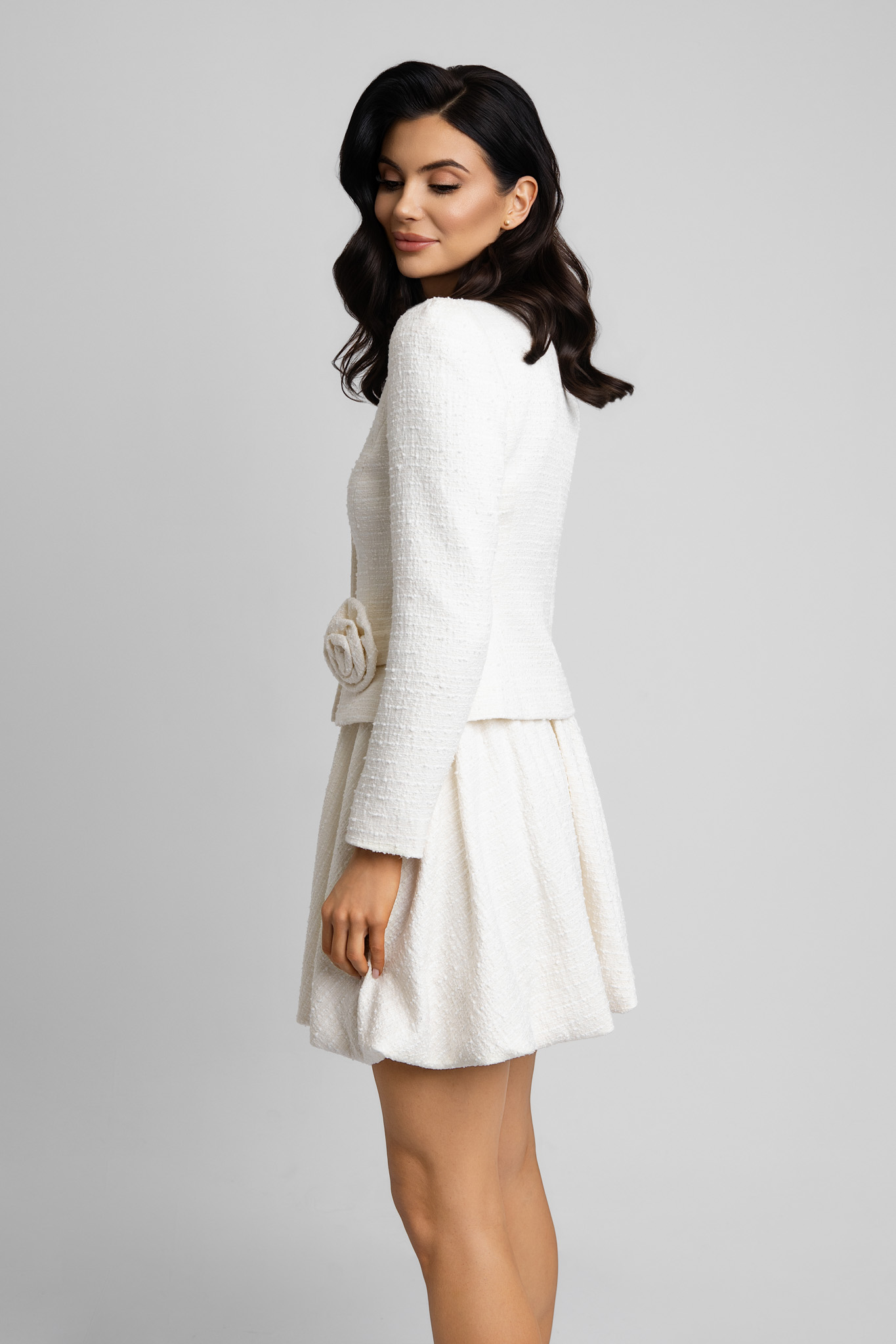 Biały tweedowy komplet spódnica+ marynarka z ozdobnymi kieszeniami Rosalie by Swing