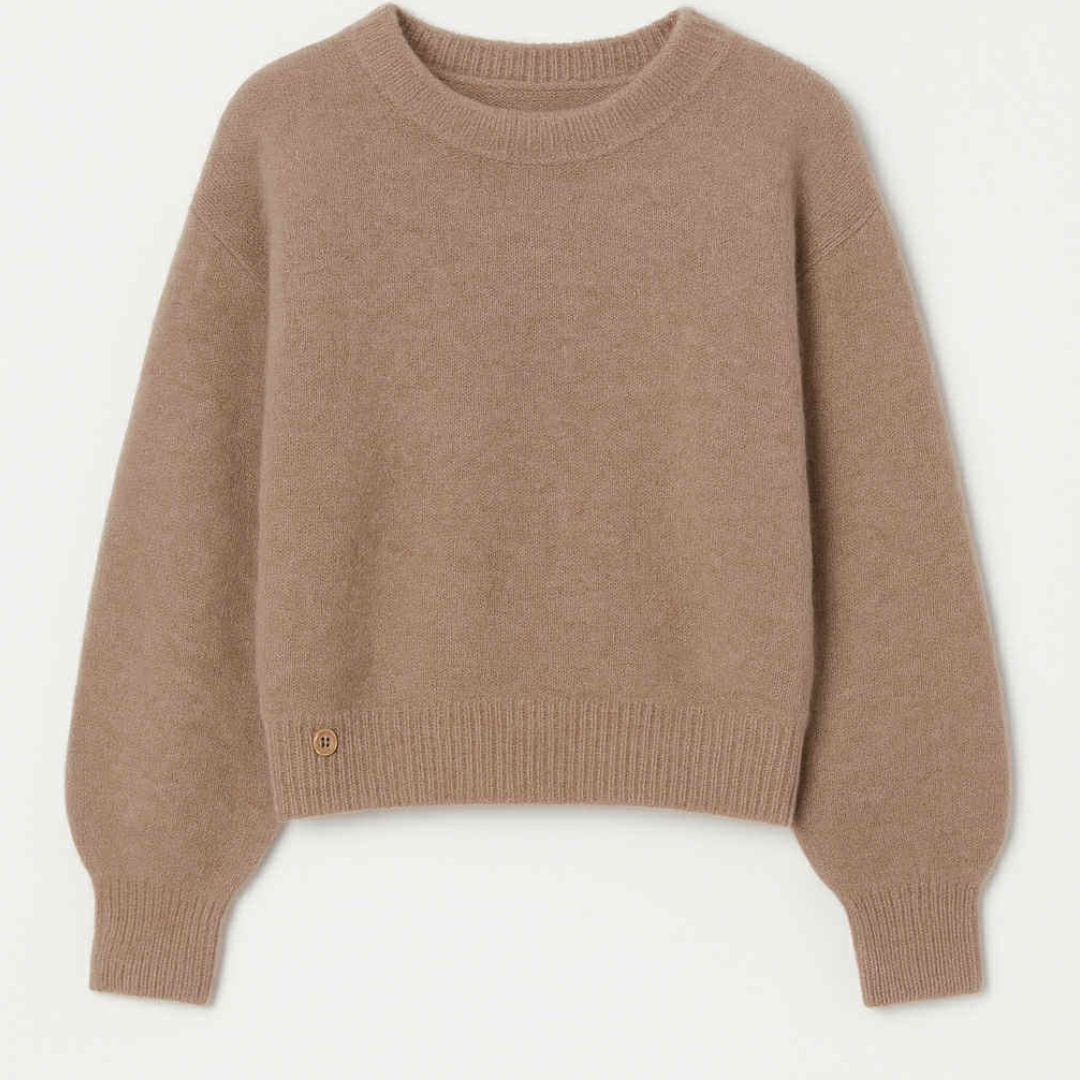Beżowy kamelowy dzianinowy wełniany sweter z okrągłym dekoltem Cosy alpaka + merino