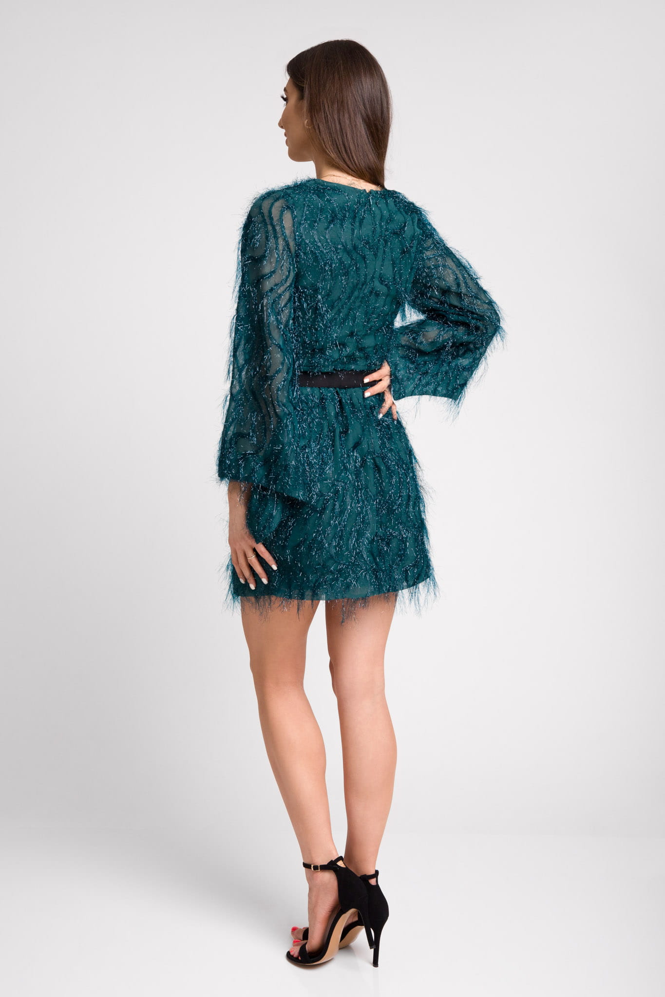 Butelkowa sukienka mini z piórami i szerokim rękawem Paloma by Swing
