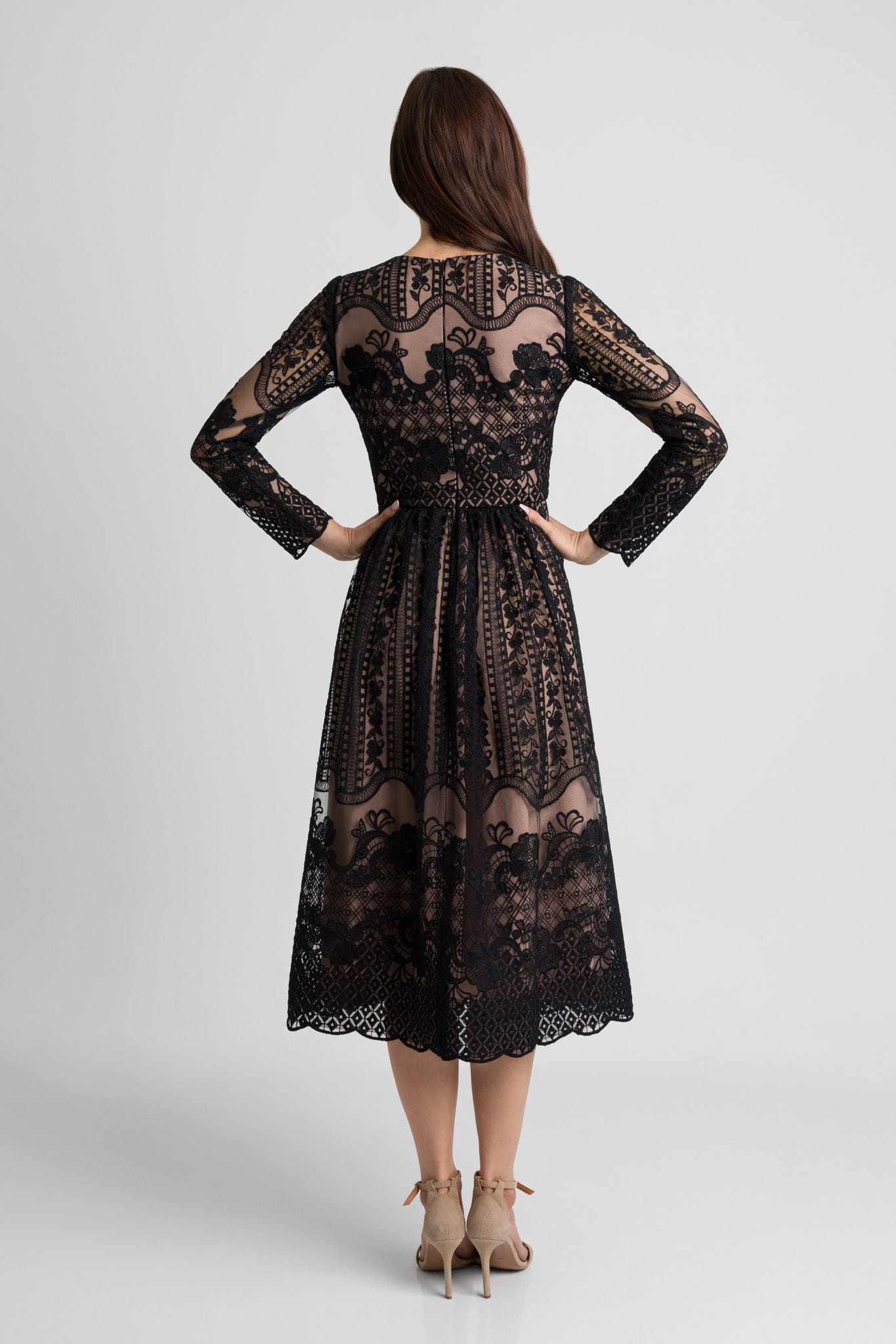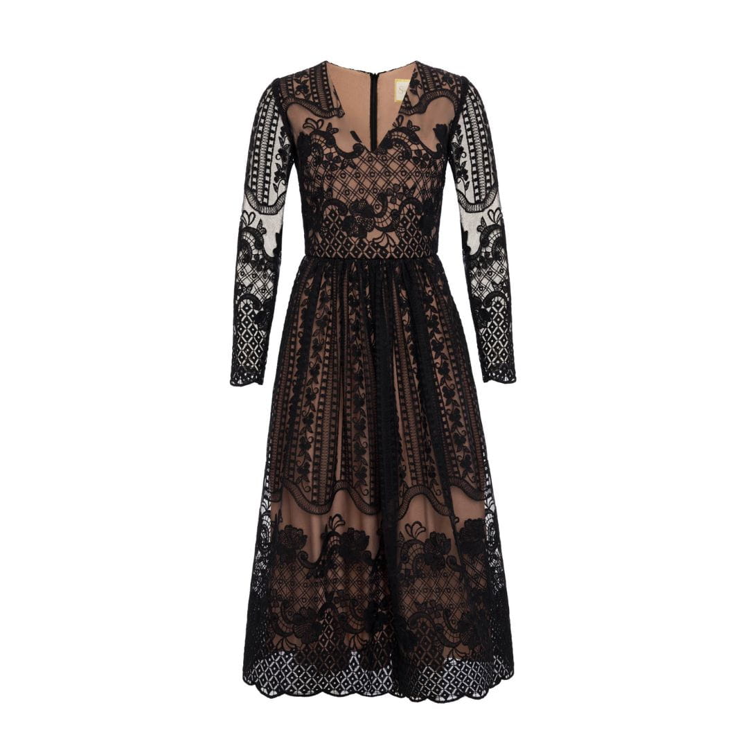 - Klasyczna koktajlowa sukienka wykonana z pięknej koronki w kolorze czarnym