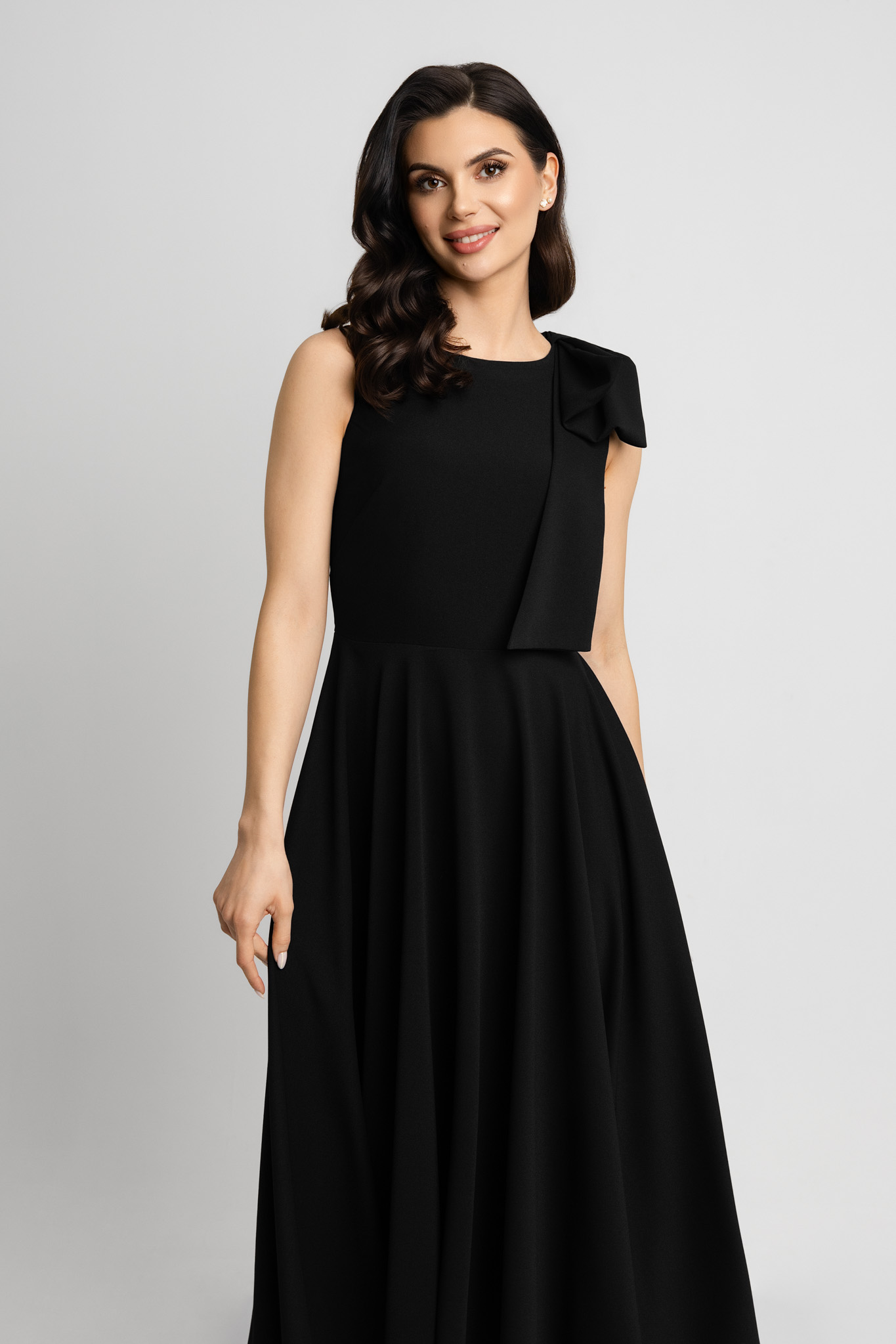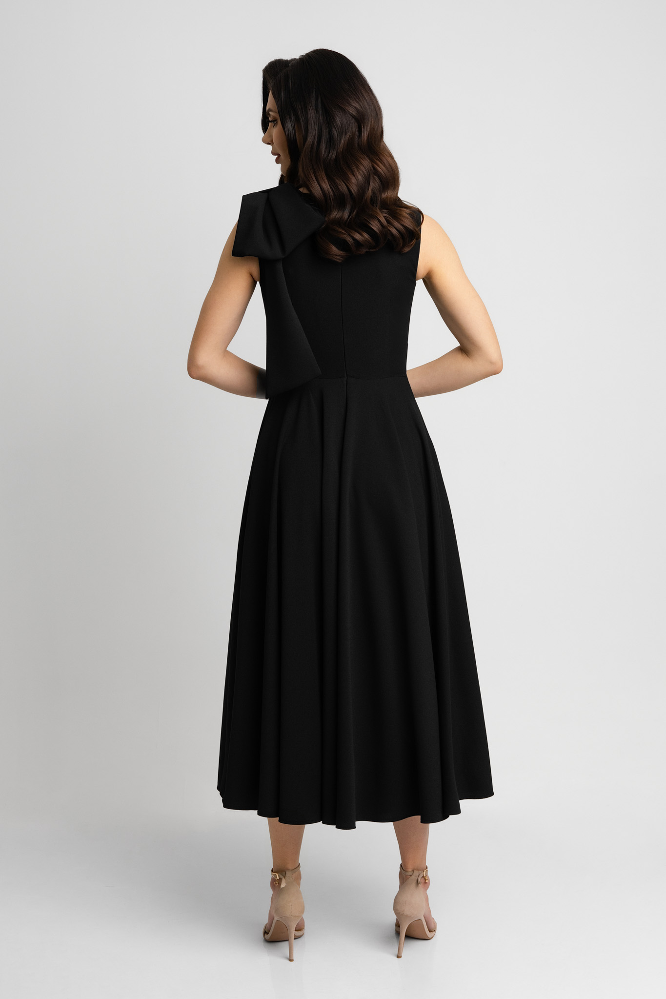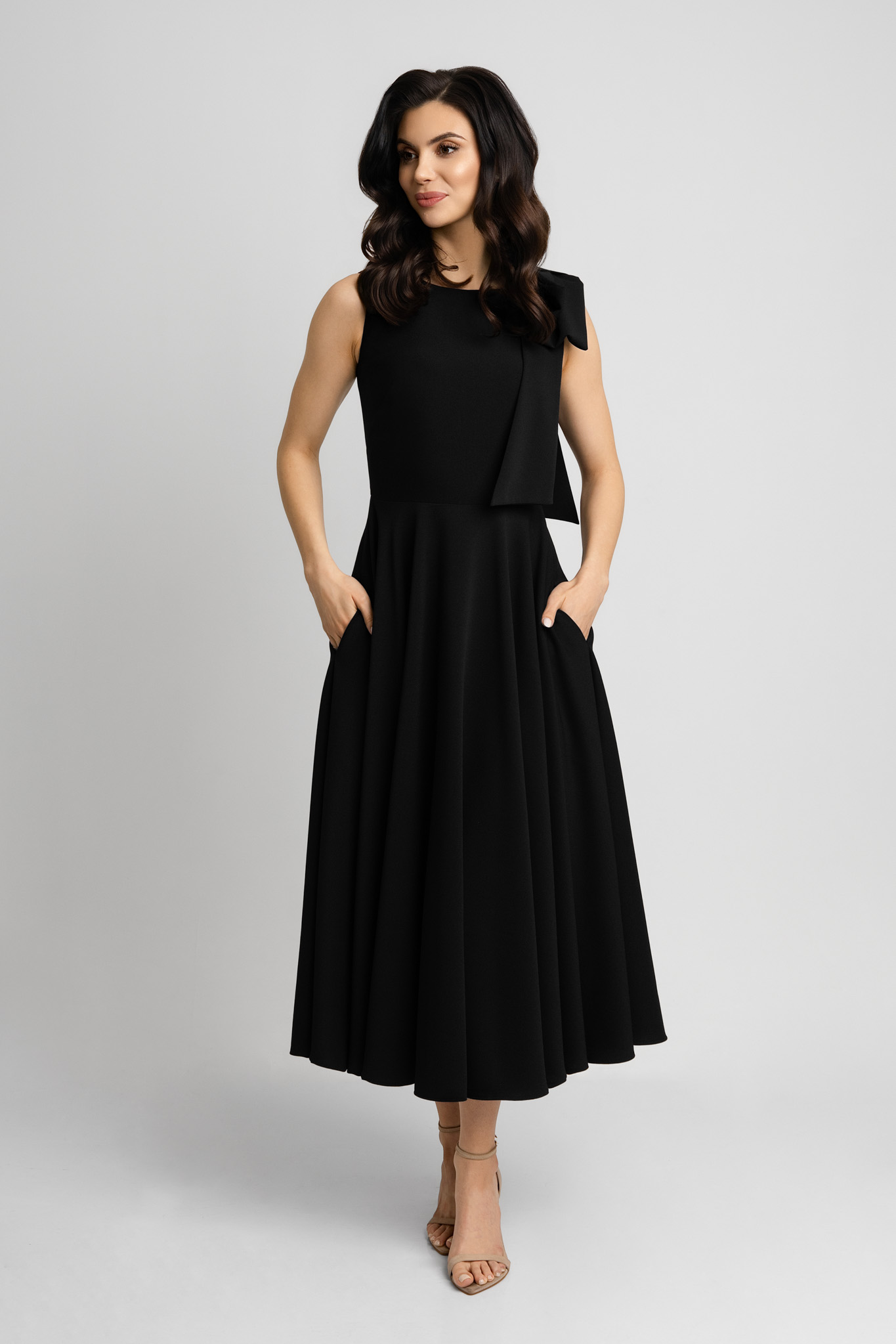 Czarna rozkloszowana sukienka midi z kokardą na ramieniu Mercy by Swing