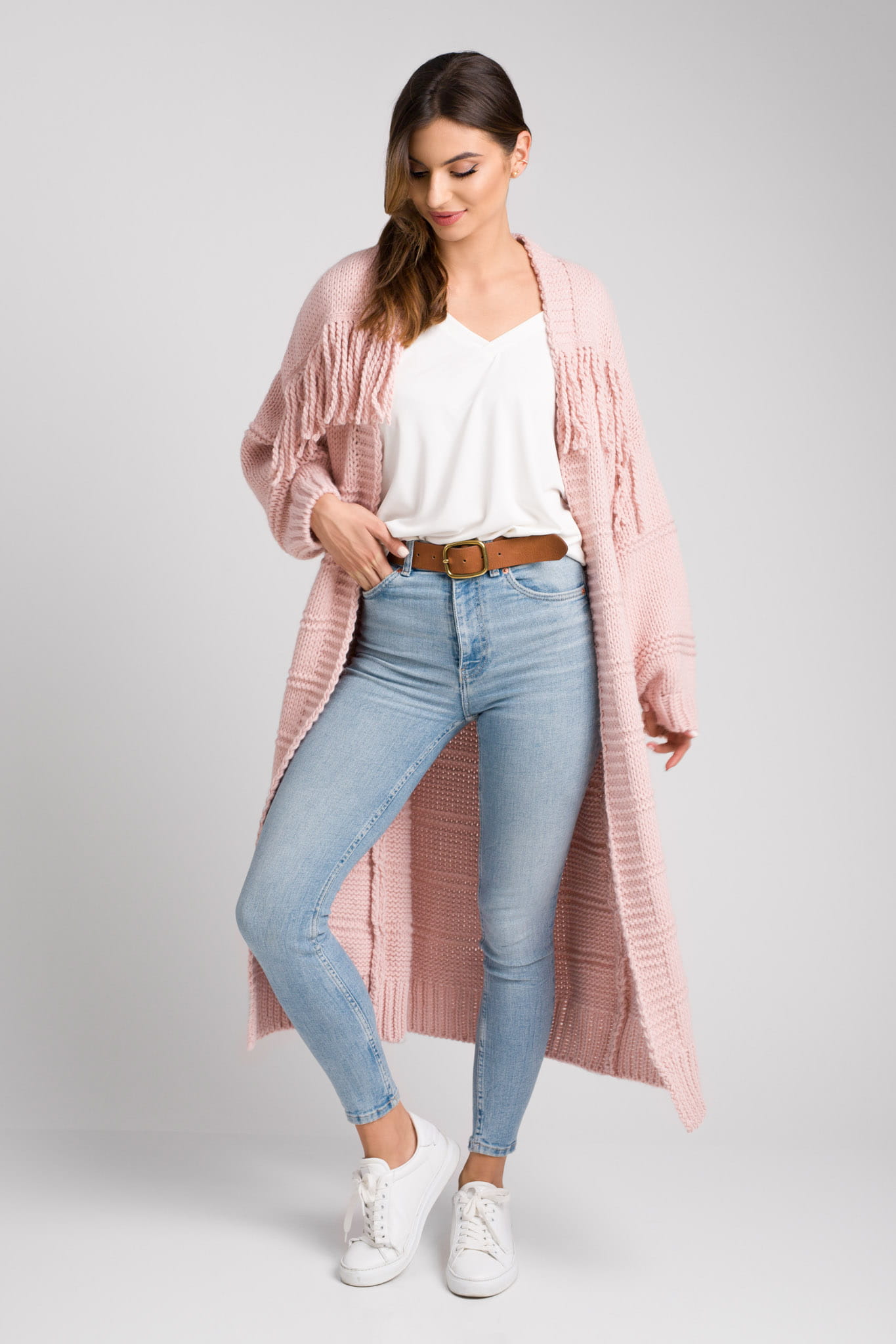 - Przepiękny kardigan z modnej długości do połowy łydki