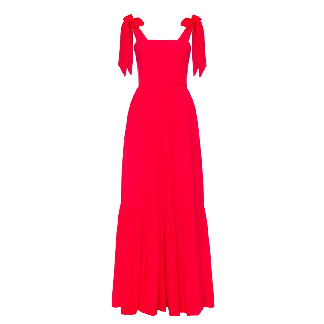Czerwona długa sukienka maxi z kokardami przy ramiączkach Dreamy by Swing