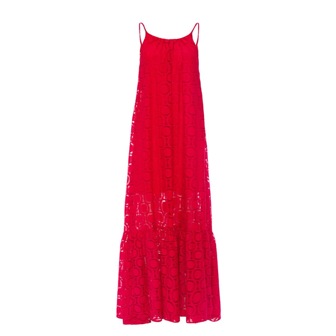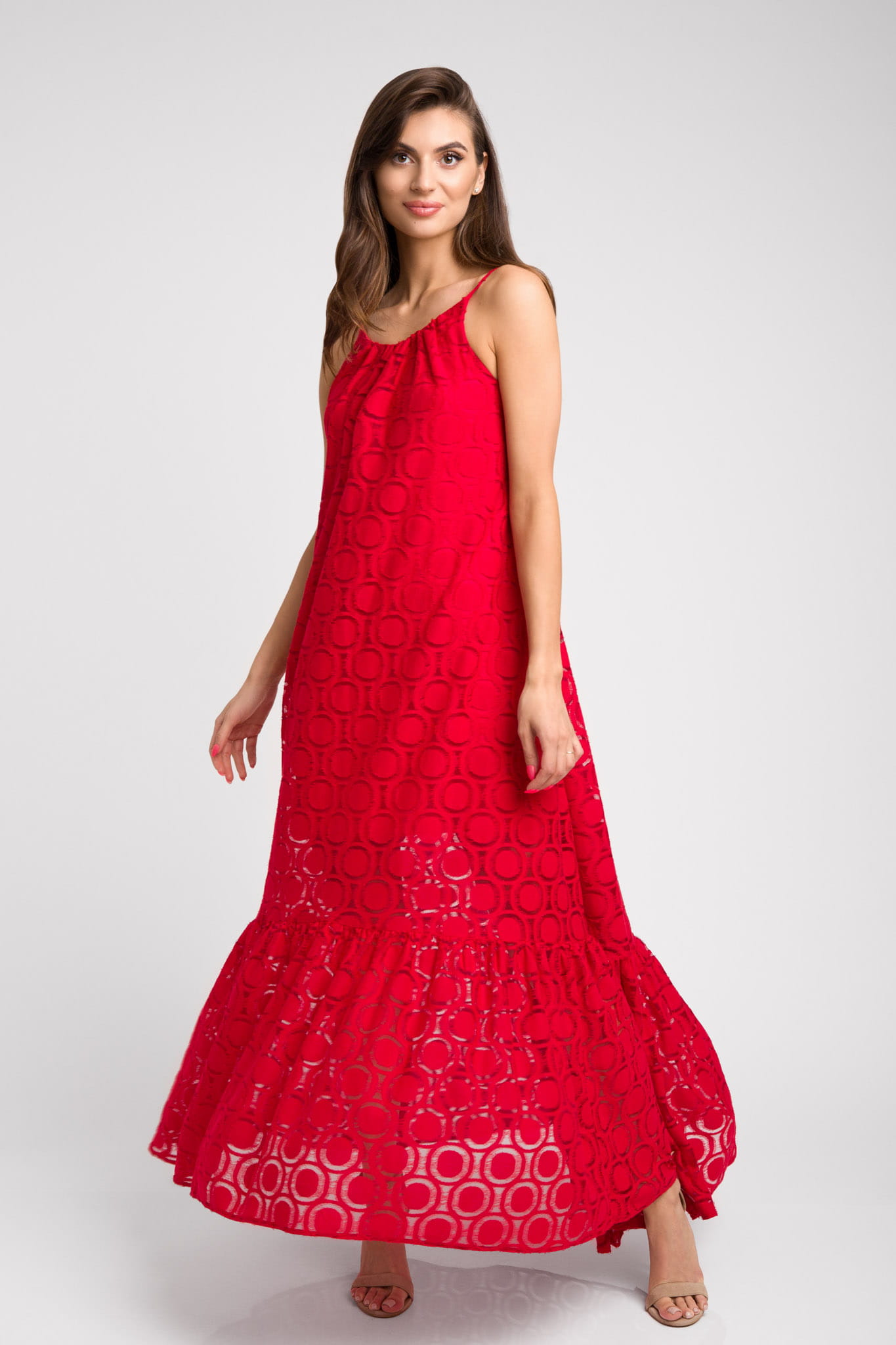 Długa czerwona sukienka na cienkich ramiączkach z odkrytymi plecami Paradise red