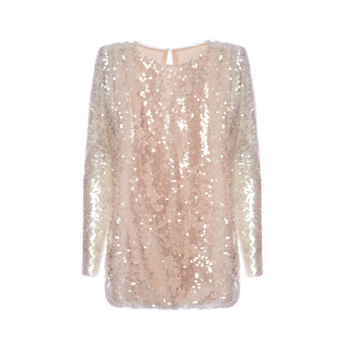 - Elegancka bluzka wykonana z białych, gęstych cekinów