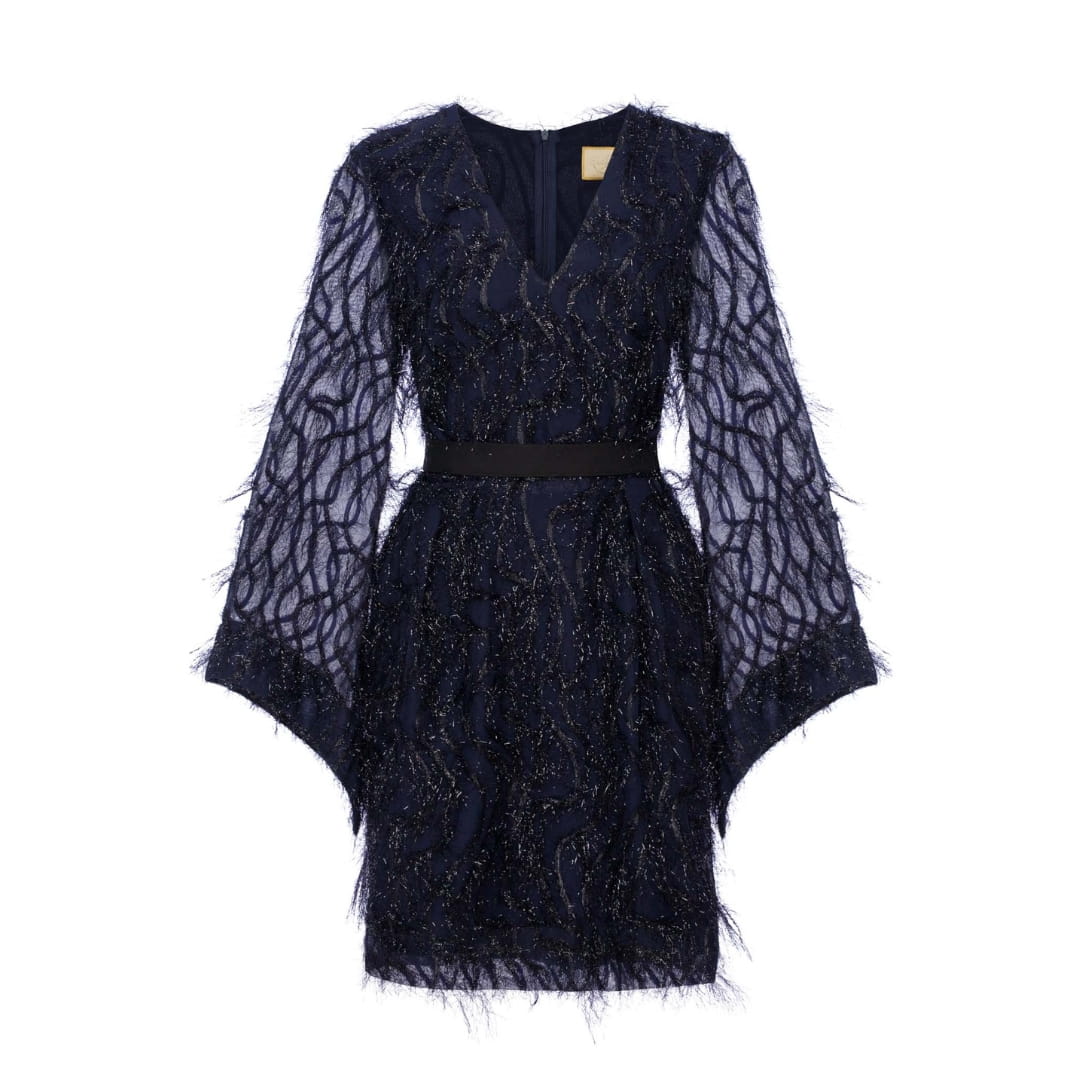 Granatowa sukienka mini z piórami i szerokim rękawem Paloma