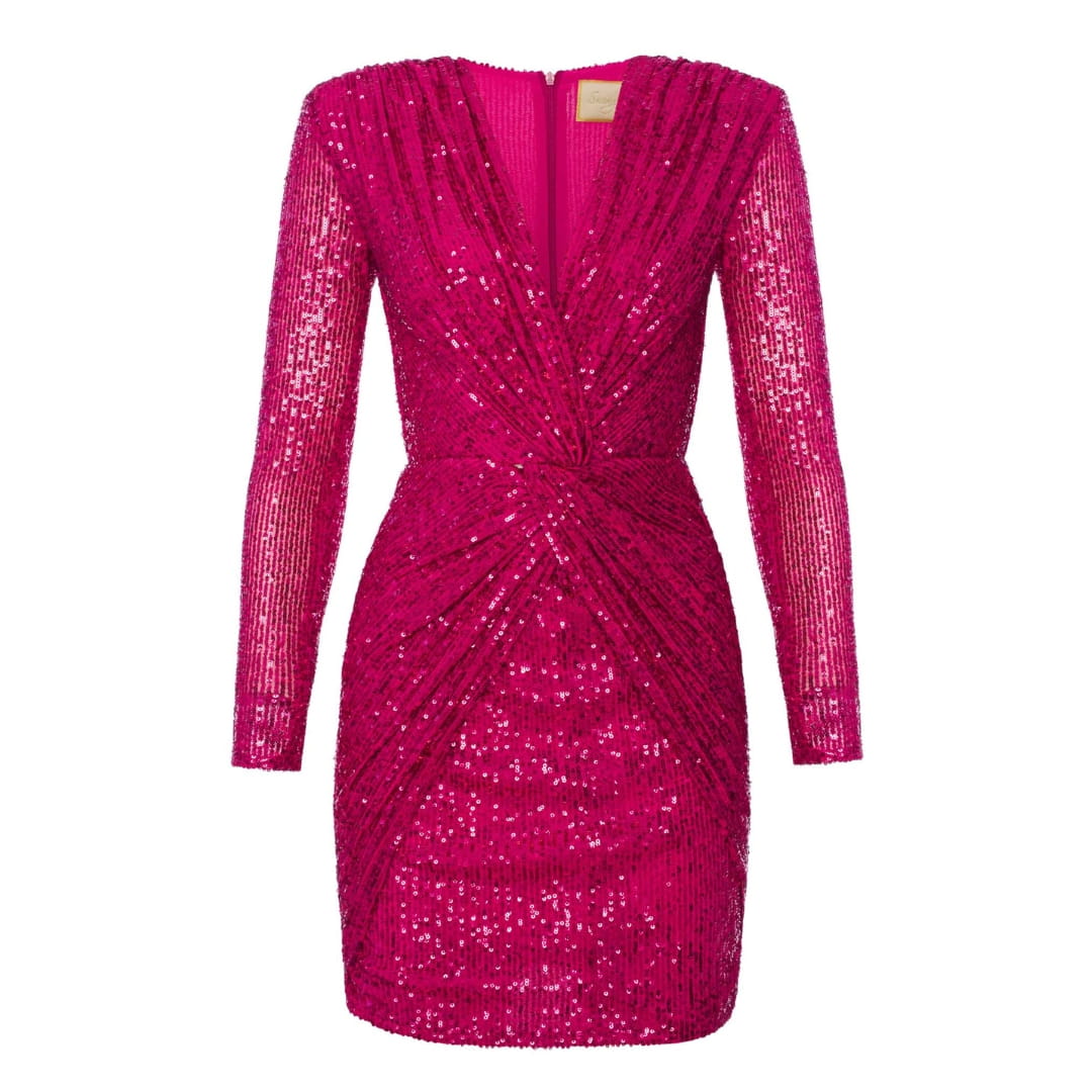 Malinowa cekinowa sukienka z efektownym przekładanym przodem Dolores by Swing