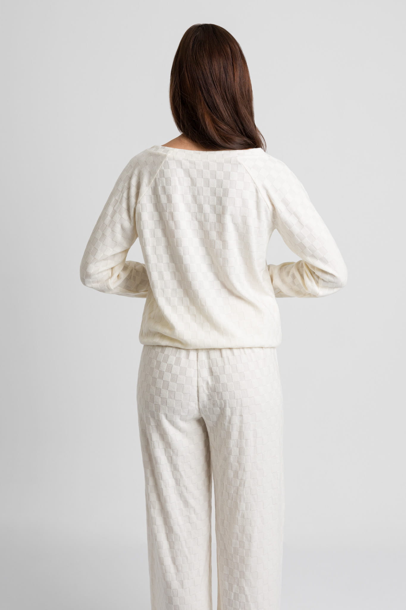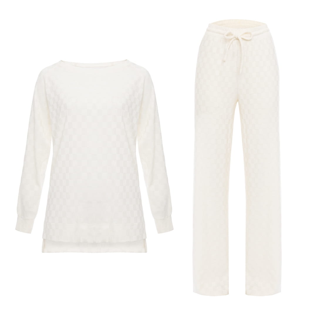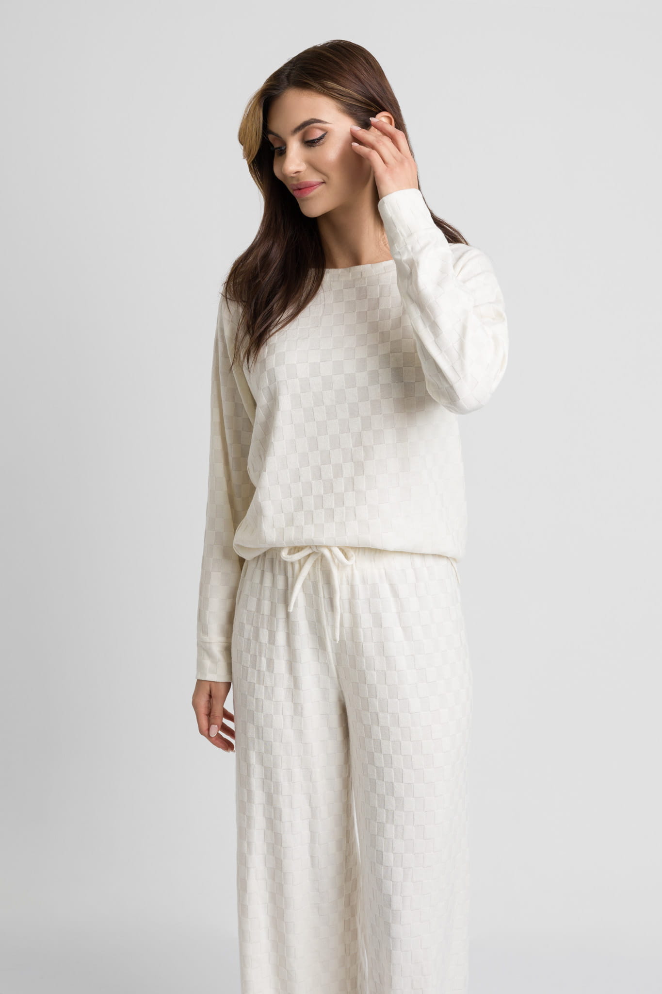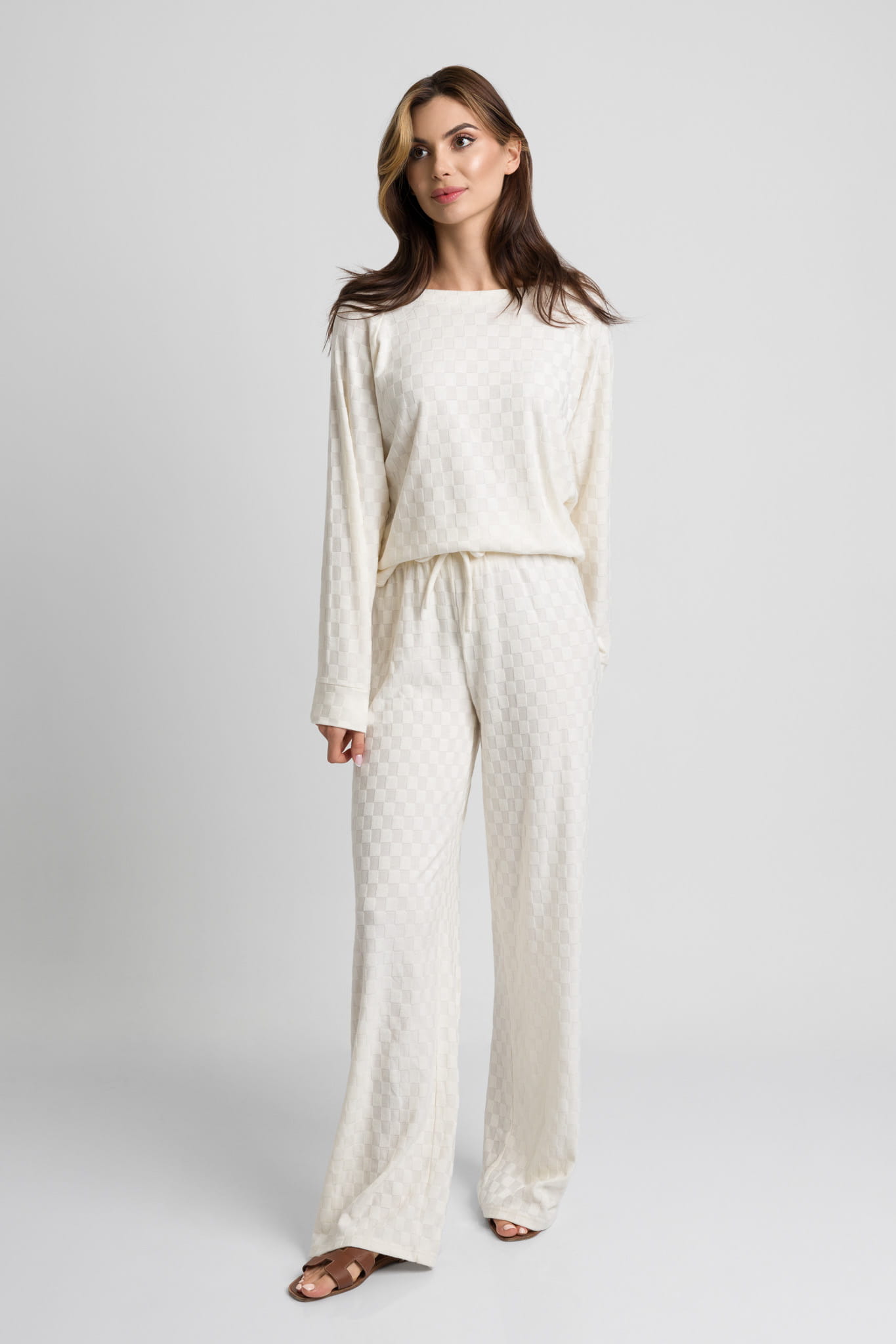 Śmietankowy dzianinowy dresowy komplet bluzka + spodnie w tłoczony wzór Brooke by Swing
