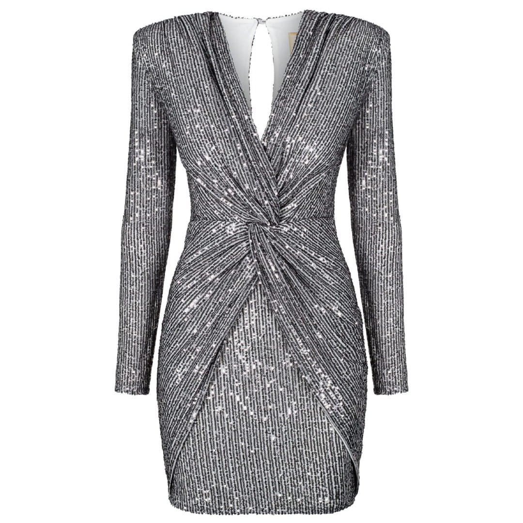 Srebrna cekinowa sukienka z efektownym przekładanym przodem Dolores by Swing